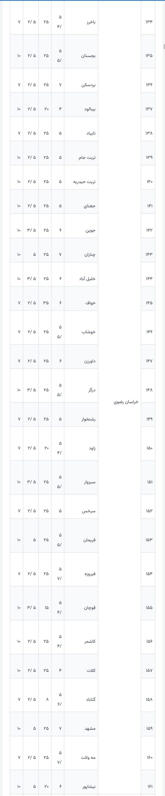 3- با توجه به مصوبه 1395/12/08 هیئت وزیران، حد نصاب فنی و اقتصادی اراضی کشاورزی در استان خراسان رضوی بدین شرح میباشد: